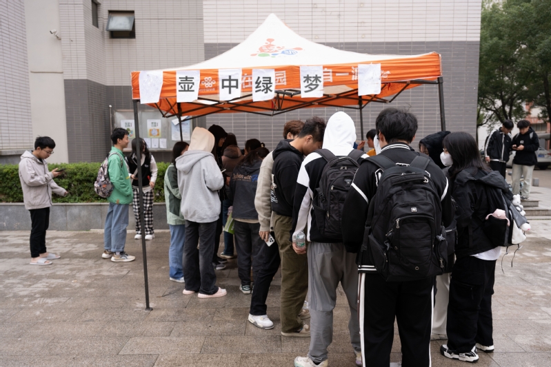 活动现场的氛围十分热烈。同学们在排队等待投壶的同时,还互相交流着垃圾分类的小知识和日常生活中的环保小窍门。获胜的参与者还可以现场挑选自己喜爱的绿植盆栽。温暖的春日阳光,映照着大家的笑脸,欢乐溢满校园。
