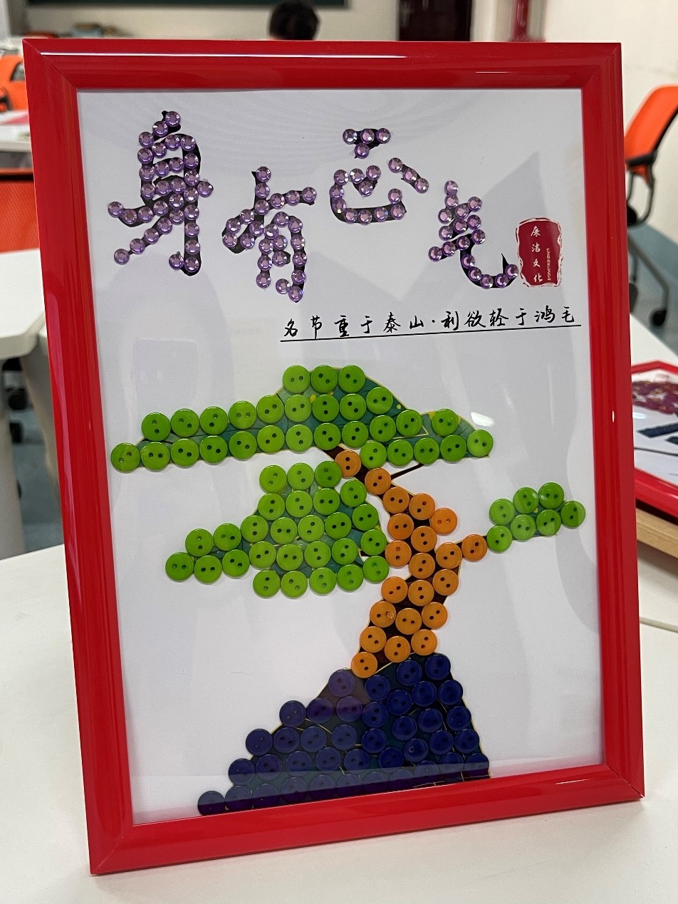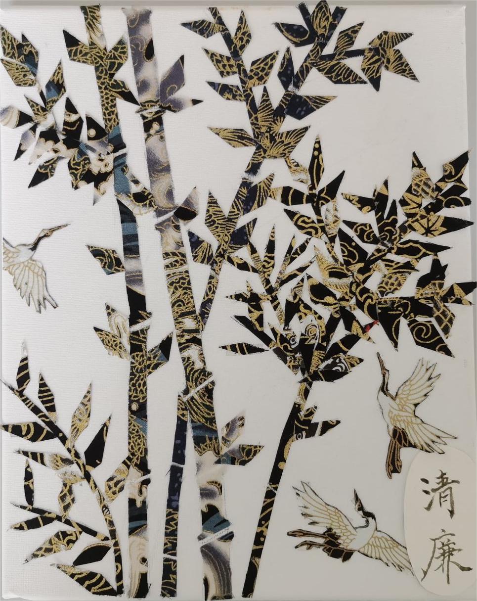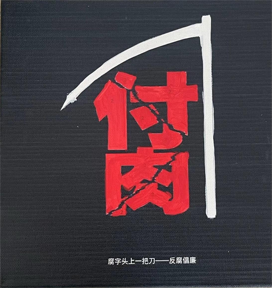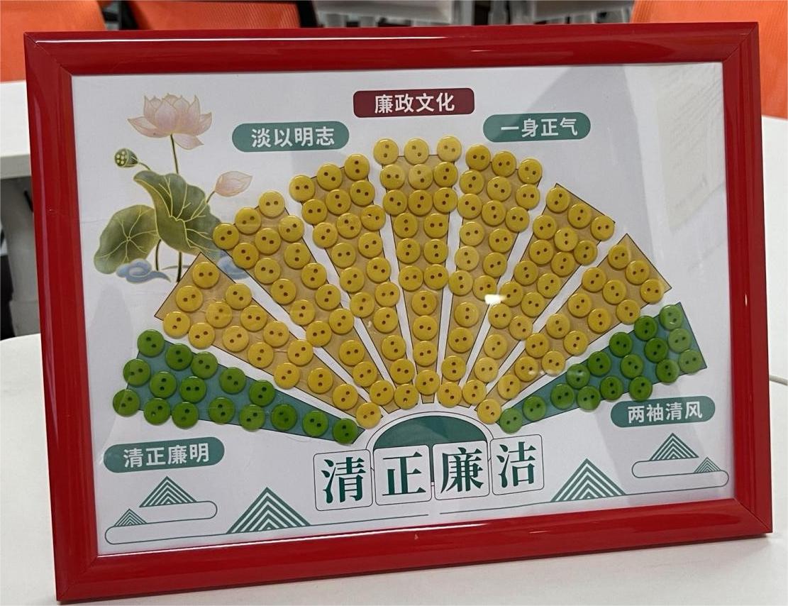 “在清廉作品创作中,我深入思考了党纪党规在日常生活中的具体体现,选择了废旧物品作为创作材料,通过剪裁、粘贴和创意拼接,将党纪学习教育主题以生动的形式呈现出来。这些作品所承载的不仅是专业创意和技巧,更重要的是它们所传递的精神内涵。”服设22302班于笑贺表示,希望能以专业所学激发同学们遵守纪律、维护规矩的自觉性和主动性,展现对党纪党规的尊重和践行。