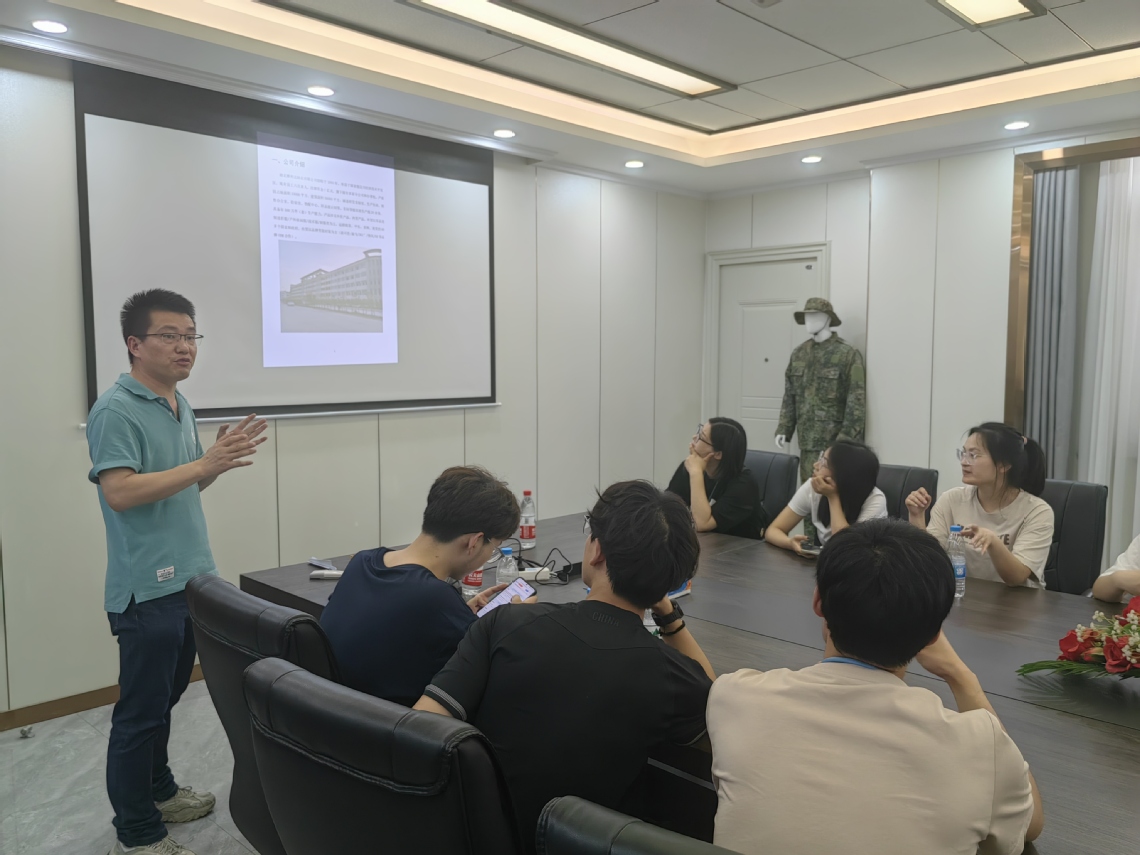 湖北雅利达制衣有限公司办公室主任宋先飞带领武职师生参观了企业的研发和生产车间,详细介绍了湖北雅利达制衣有限公司的发展历程、业务范围、业务分布以及未来规划。