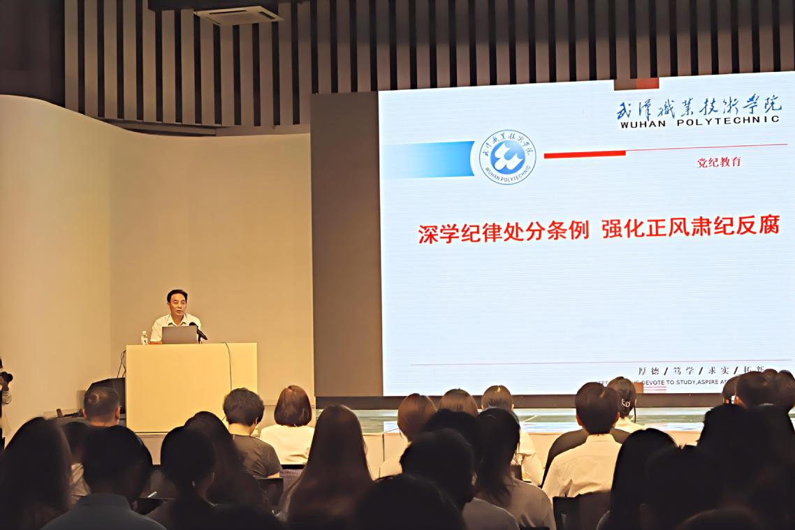 胡类明以《深学纪律处分条例强化正风肃纪反腐》为题,从《条例》修订的主要内容、“六大纪律”负面清单、高校违纪违规违法典型案例等三个方面,结合公司工作开展及典型案例对《条例》进行深入细致的解读。他指出,纪律是管党治党的“戒尺”,也是党员干部约束自身言行的标准和遵循。无论是教师还是员工,都需要紧盯《条例》中违法违纪问题的风险点,强化自我约束,切实将党纪学习教育成果转化为推动正风肃纪反腐的实际成效。