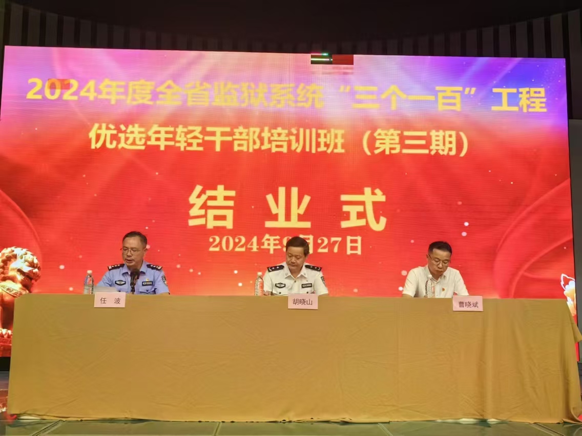 湖北省监狱管理局沙洋办事处教育培训部主任任波主持结业仪式