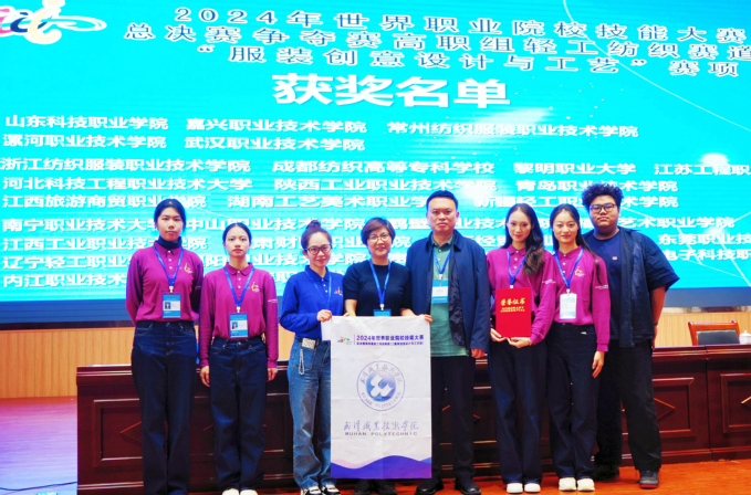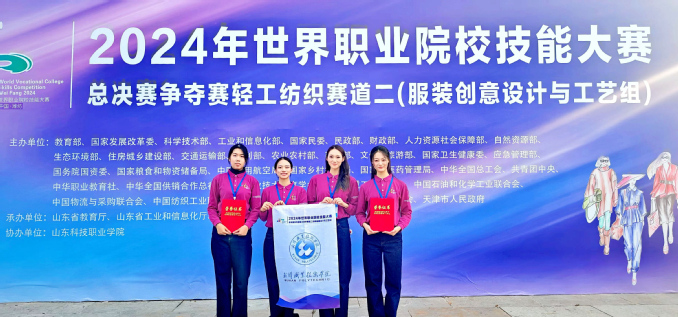 新闻网讯(通讯员 王莉诗、陈陶)10月25日,从山东潍坊传来喜讯,在2024年世界职业院校技能大赛总决赛争夺赛中,由陈子琪、乔冉、胡清韵、江锐组成的武汉职业技术公司代表队从50支参赛队伍中脱颖而出,喜提高职组轻工纺织赛道二(服装创意设计与工艺组)赛项全国金奖,王莉诗、陈陶荣获“优秀指导教师奖”。