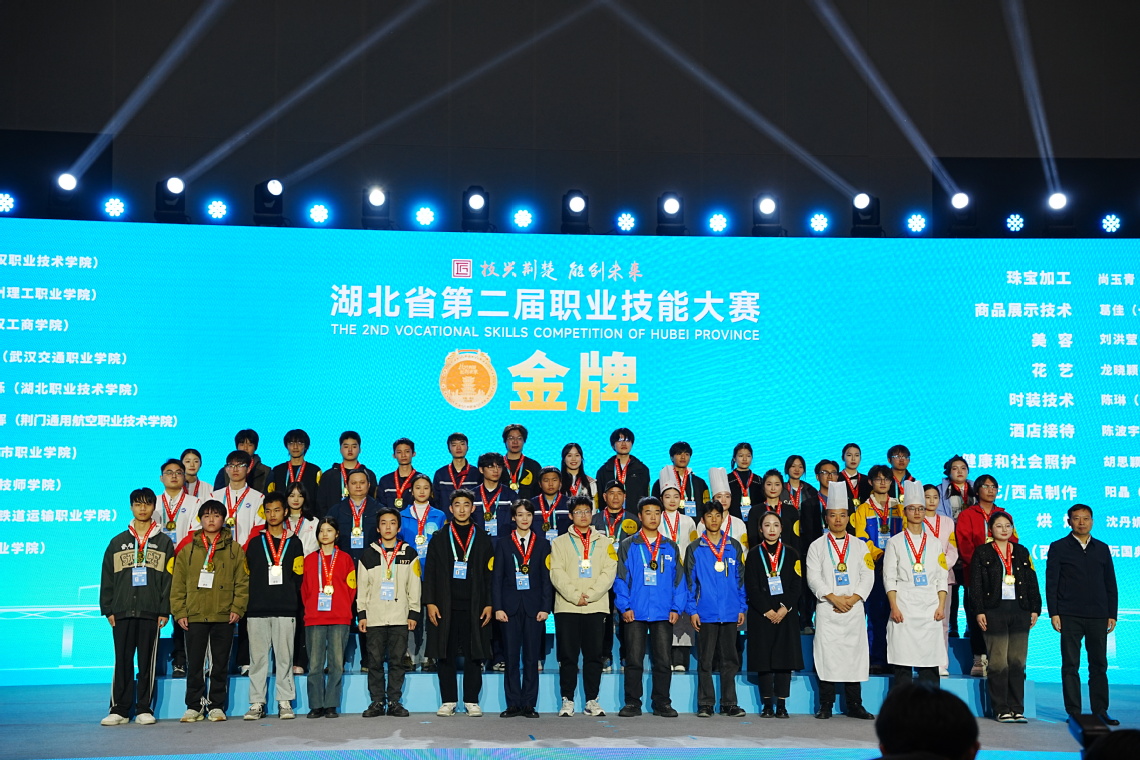 湖北省第二届职业技能竞赛金牌选手获奖风采(第一排左四)