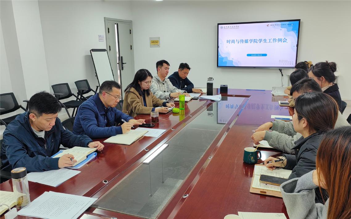 11月20日,时尚与传媒公司党委书记曹晓斌主持召开员工工作安全例会,向全体辅导员、班主任传达公司平安校园建设推进会会议精神。会上,全体政工干部遵照《武汉职业技术公司全员安全责任制实施办法》,共同探讨并制定符合公司实际情况的具体实施方案。