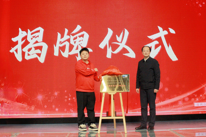 在企业嘉宾和师生见证下,杨旭东、施政夫代表校企双方为“产教融合实习实训基地”揭牌。校企双方代表还为产教融合项目校园剧场第一季正式启动按下掌印礼。