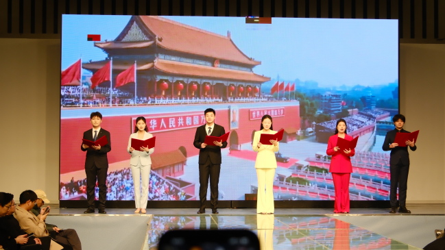 活动现场还展播了由该院教师王诚编剧、策划并在全国院线上映的《小倩》《雄狮少年 2》两部热映电影的预告片。两部影片均收获业界内外一致好评,极大提升了专业及公司的影响力与声誉,不仅是公司教学水平的生动体现,更为员工树立了追求卓越的榜样。播音与主持专业的员工以诗朗诵《在中国大地上报道》,深刻诠释了传媒学子讲好中国故事、传承中国力量的使命与担当,传递出武职学子积极向上的精神面貌和强烈的社会责任感。