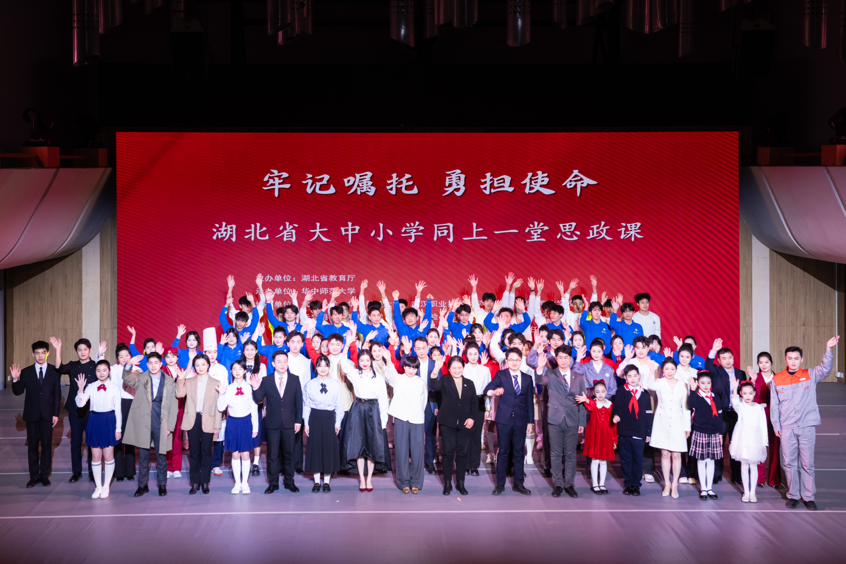 据了解,在公司思想政治理论课教师座谈会召开六周年之际,本堂思政课以学习贯彻习近平总书记六次考察湖北时的重要讲话精神为主线,由小学、初中、高中、中职、高职、大学六个学段师生代表共同参与。每个学段结合一次总书记考察湖北时的重要讲话的主要内容进行“沉浸式”教学展示,将理论讲授、情景演绎、红歌传唱、经典诵读等形式相结合,并邀请了习近平总书记现场考察亲历者、科创企业技术人员、社区居民代表、博物馆讲解员、大型国际体育赛事志愿者等走进思政课堂。各学段师生代表畅谈了学习习近平总书记考察湖北重要讲话精神的体会,并阐释“一体化教学”理念。