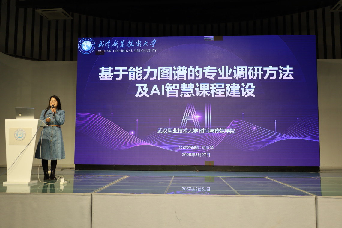 在专题报告环节,智慧树教育专家金课咨询师向康琴以《基于能力图谱的专业调研方法及AI智慧课程建设》为题,从专业调研、能力图谱构建、AI教学实践三个方面,展开专题报告。