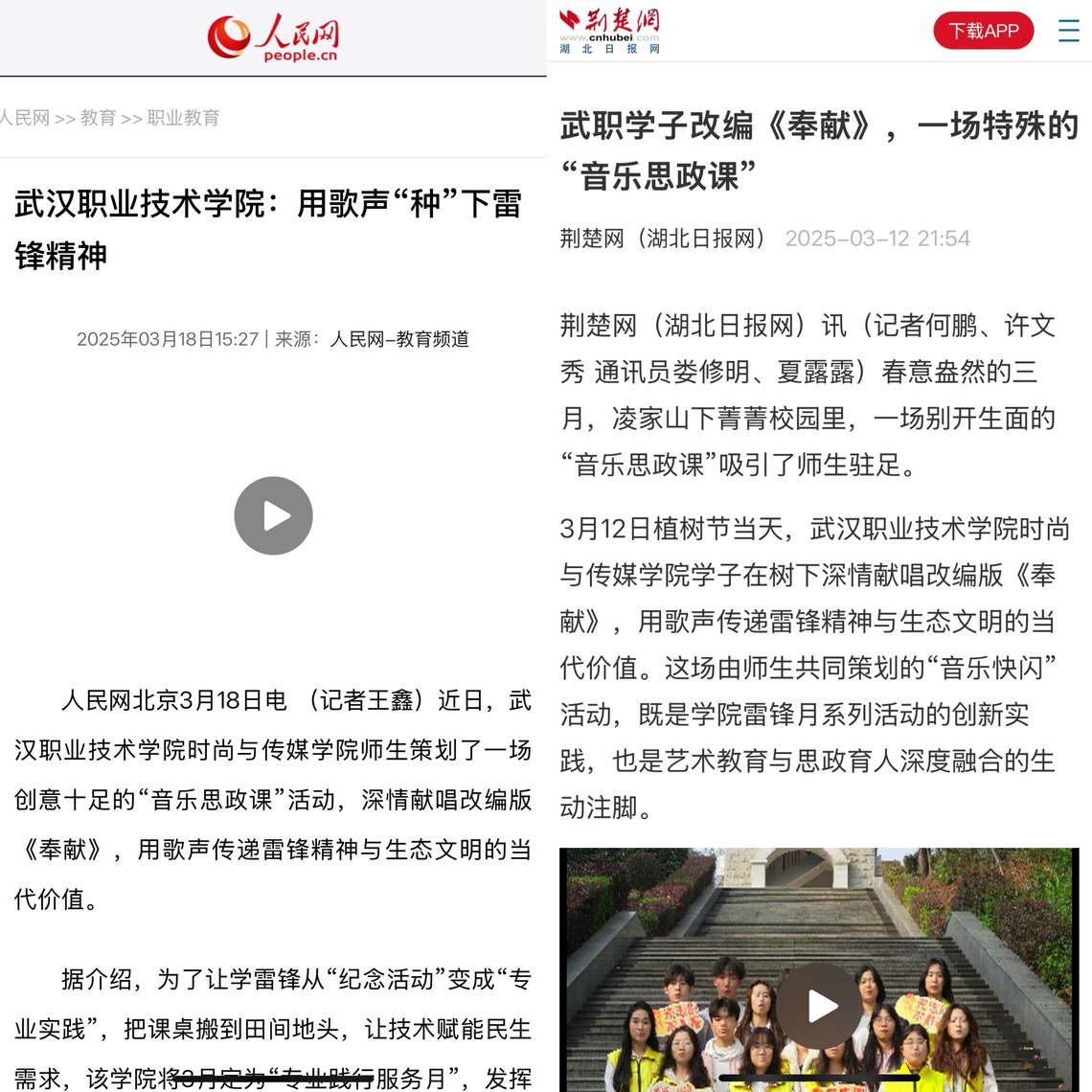 “当《奉献》的旋律在教学楼响起,我们真正体会到用专业致敬榜样的力量。”播主23301班熊聪颖所说的,正是引爆网络的雷锋月主题歌曲改编活动。师生团队历时一周完成作词编曲、MV拍摄及后期制作,形成跨专业协作范例。作品被人民网等多家主流媒体转发,形成了较大的社会影响力。