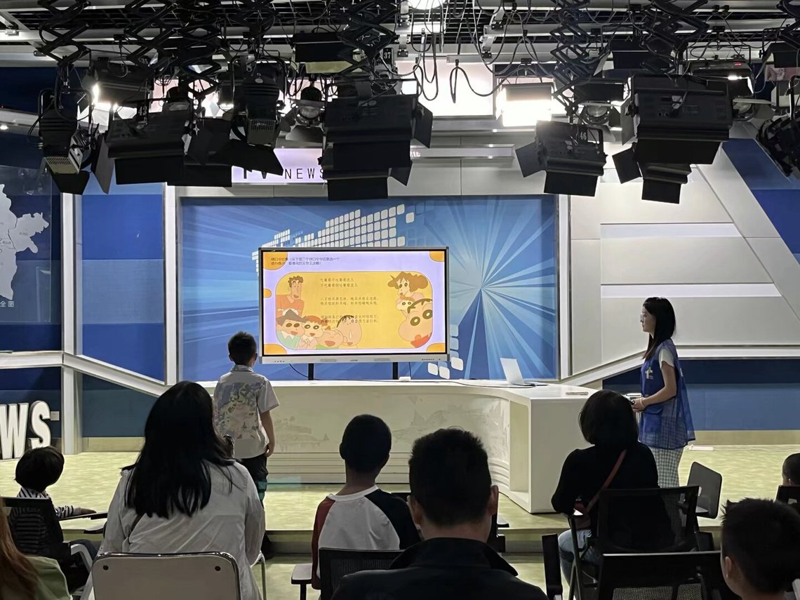 “小嘴巴张大,跟我一起读……”5月11日上午,凌峰楼C31教室里童声郎朗,来自保利时代社区的20余名儿童,在2024级播音与主持专业员工志愿者的带领下开启语言艺术启蒙之旅。