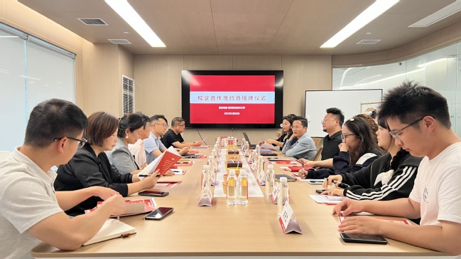胡象斌介绍了公司办学定位、专业布局、育人体系和产教协同创新成果。他指出,此次共建产学研基地是教育链与产业链精准对接的关键举措,将为后续深化产教融合协同育人机制、拓展海外合作项目奠定基础。
