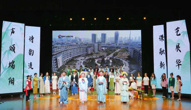 作为课程改革实践,展演将播音主持专业教学成果与传统文化传承深度结合,以“立体化、具象化、戏剧化”展现育人特色。《端午长歌》中精准的发声把控、《诗歌联诵》声韵流转的节奏张力以及在《离骚寰宇颂》对语音发声、播音创作、即兴表达、舞台表演等专业能力的融合,让学子们成为文化传播的“活载体”。