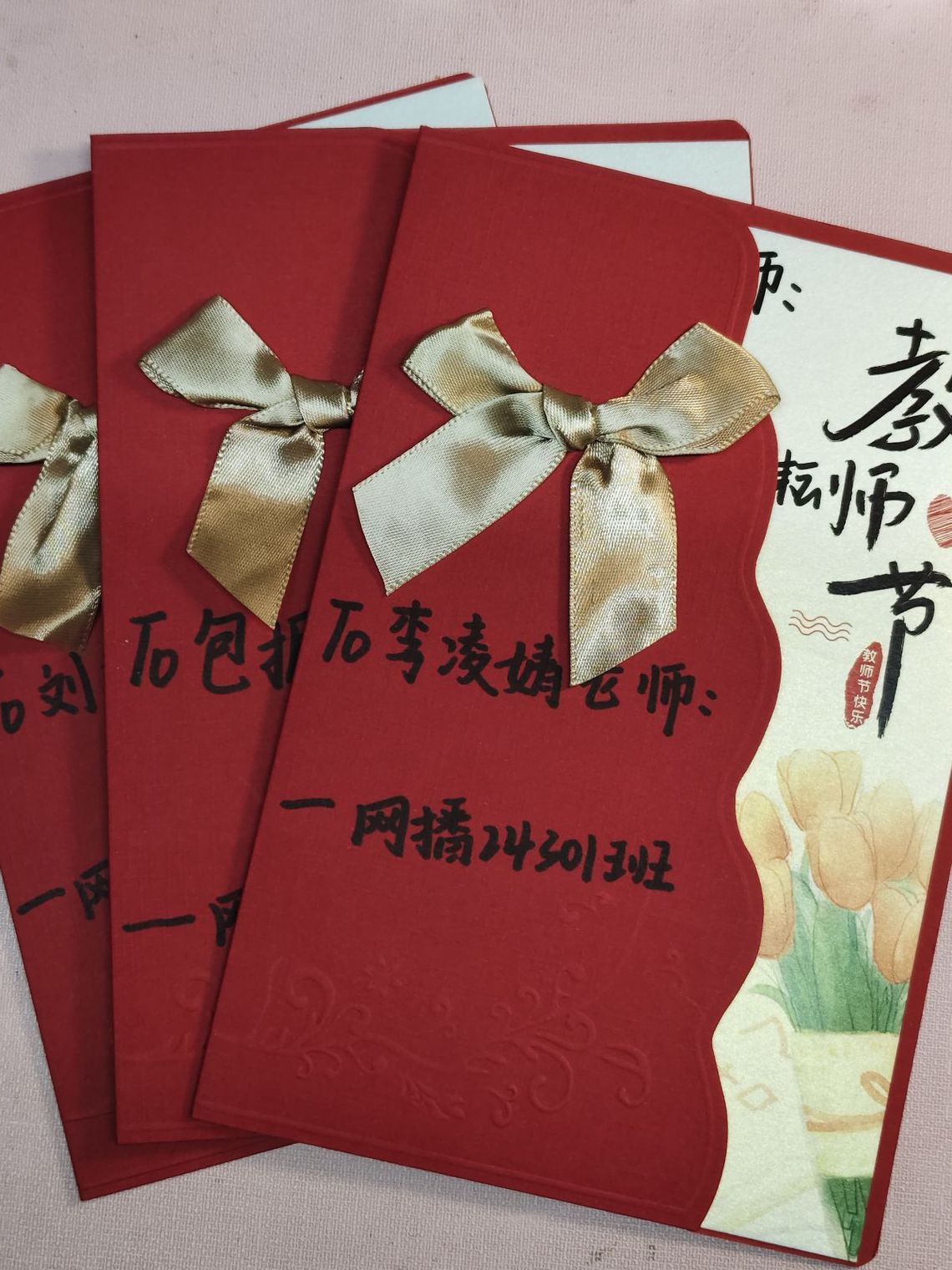 除了课堂上的惊喜,每个班集体还为老师准备了手写贺卡。同学们拿起笔,将对老师的感恩与祝福细细书写:“感谢老师每次课后耐心解答我的疑问,您的鼓励让我更有信心学好专业”“老师,您的课堂生动有趣,让我爱上了这门学科,祝您节日快乐”……一张张卡片,字迹或工整、或稚嫩,却都饱含着学子对老师的真挚情感。