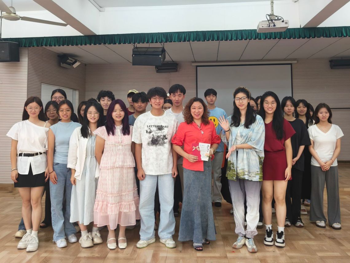 9月10日,凌曦楼内祝福与窗外秋阳共同照亮了教室的每个角落。第一节上课铃声刚响,播主24302班的教室里突然响起整齐响亮的祝福:“谭老师,教师节快乐!您辛苦了!”表演24301班的同学们则以快闪形式,再现了课堂上老师指导表演、师生互动的温馨场景,熟悉的画面搭配真挚的祝福,让王老师深受感动。