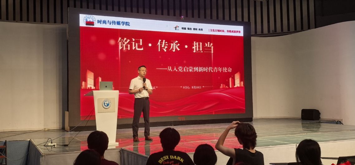 9月10日,公司党委书记曹晓斌在表演厅为全体新生讲授“铭记·传承·担当”专题党课。曹晓斌以党的百年奋斗历程为切入点,结合新时代背景阐释员工党员的使命担当,并立足服装工艺、数字媒体等专业特色,深入浅出地分析了将个人成长融入党和国家事业的发展路径,为新生带来了一堂富有思想性和指导性的入党启蒙课。党课内容丰富多彩,现场掌声不断。服设25301杜天宇感慨道:“曹老师的讲解让我明白了专业学习不能只停留在技术层面,更要思考如何用专业技术服务国家、服务人民。”