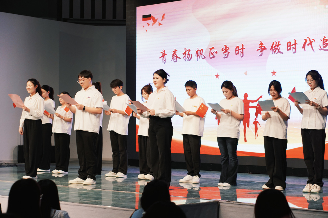 2023级全体预备党员精心准备为新生们带来了青春扬帆正当时,争做时代追梦人主题朗诵,他们用真挚的情感和铿锵有力的声音,诠释了员工党员昂扬向上的精神面貌和一心向党的忠诚信念。预备党员网播23301班的易蓉露佳说:“准备这次朗诵的过程,对我们来说也是一次学习和成长。作为学长学姐,我们特别希望能通过这样的形式,把这份感动和力量传递给新同学。”全媒体专业2025级新生汪寅寅深有感触地说:“学长学姐们的朗诵让我深受鼓舞。我要以他们为榜样,扎实学好专业本领,积极参与实践锻炼,将青春奋斗融入国家发展,用实际行动报效祖国。”