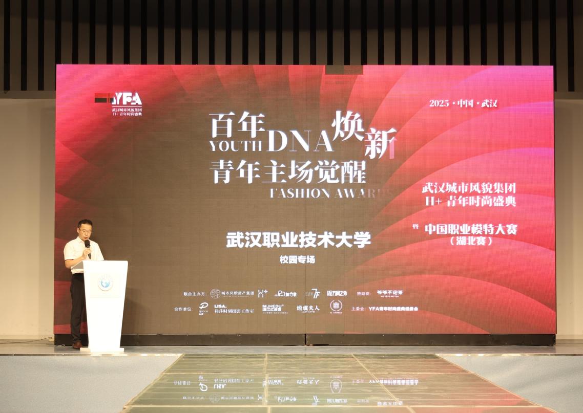 武汉职业技术大学时尚与传媒公司党委书记曹晓斌登台致辞,表达公司对选拔赛的高度重视与期望,肯定其推广武汉城市美学的积极价值。他鼓励选手放下包袱,在舞台上展现自我、追逐梦想,将对武汉城市美学的理解融入展示;同时强调公司在时尚与传媒领域的人才培养决心,希望以赛事为纽带为员工创造实践机会,助力其成长为契合行业需求、传递本土文化的高素质人才。