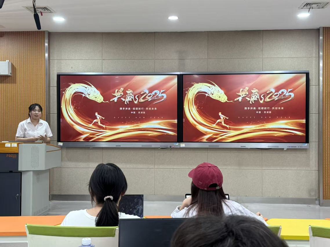 招聘会现场还有一位“特殊嘉宾”—— 已入职武汉汇银双湖园酒店的全媒体 18301 班员工张同丽。她专程重返母校课堂,向学弟学妹们分享从校园迈向职场的成长历程:从初入岗位时的手忙脚乱,到如今独当一面的自信从容,再到如何平衡工作与自我提升…… 她的经历真实鲜活,建议实用中肯,让在场学子倍感亲切,更坚定了直面就业的信心。