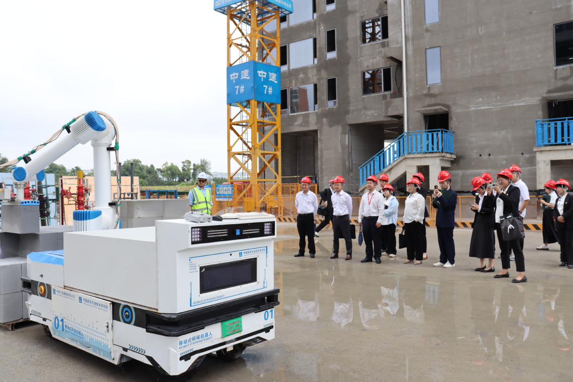 活动伊始,在中建壹品投资发展有限公司项目部党支部副书记付攀琪的引领下,师生代表走进施工现场,开启一场“科技感十足”的智能建造观摩之旅。