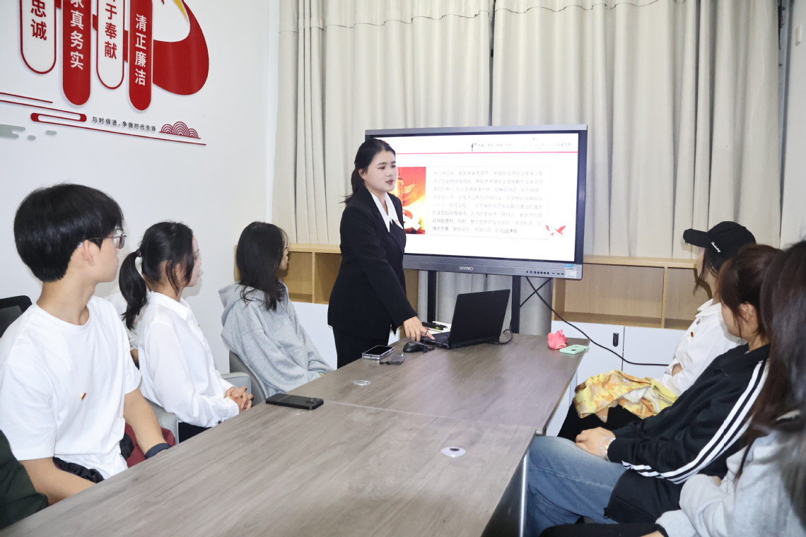 10月16日下午,求实“一站式”员工社区内暖意融融,“祖国成就我来讲”主题宣讲活动正热烈开展。大二、大三员工党员与新生代表齐聚一堂,共话祖国发展成就,共感时代奋进脉搏。